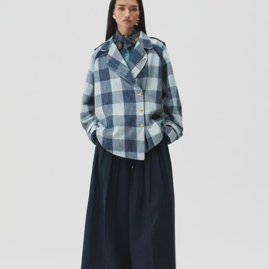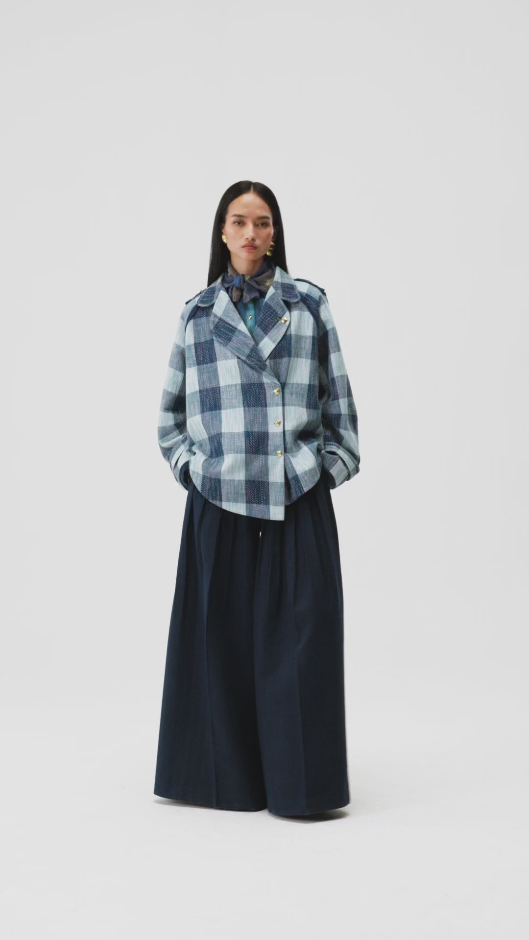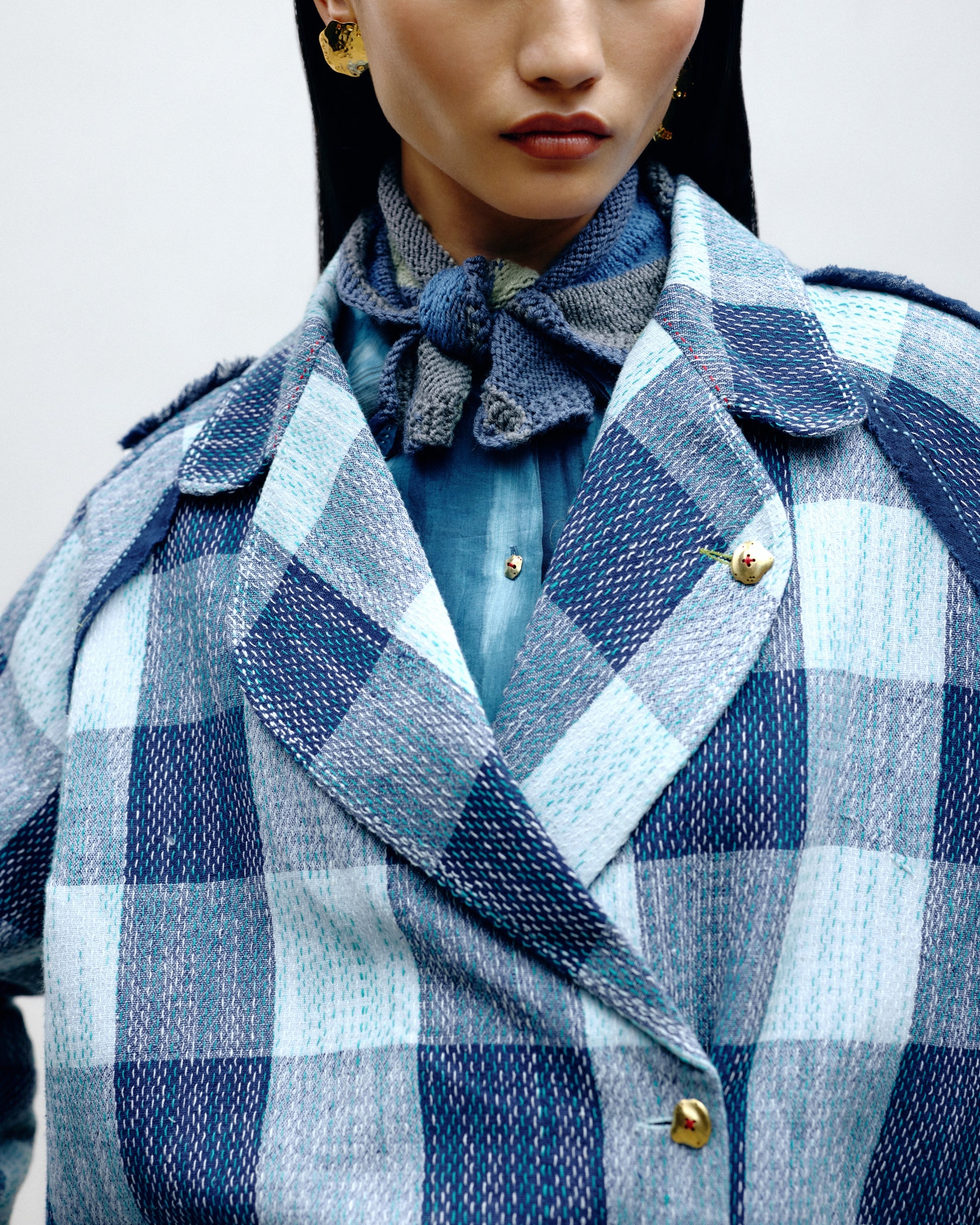 Handwoven cotton Jacket with an asymmetric hem with frayed edge detailing, delusion-of-style armhole sleeves and hand-embroidered highlights.
